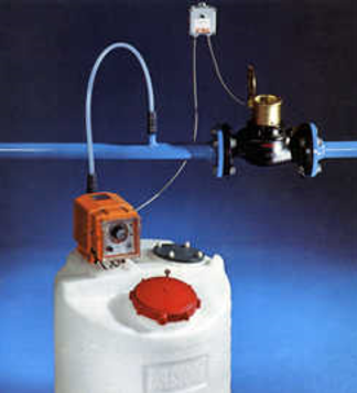 Sistemas de dosagem automática, com contadores de impulsos e deposito para produto Químico.